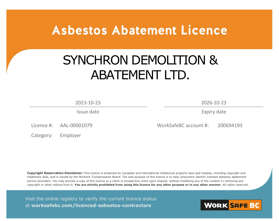 With certified expertise and an officially licensed team, Synchron Demolition & Abatement Ltd.